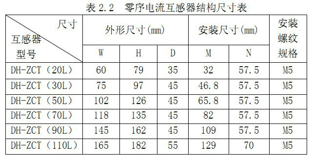 3、零序电流互感器的结构尽寸如表 2.2,外形示意图如图 2.3所示